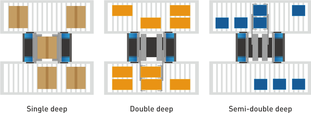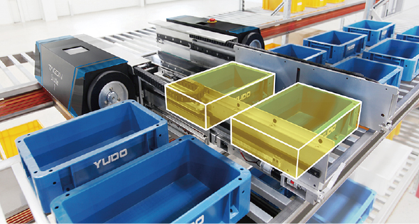 6개의 Finger 장착으로 한 번에 2개의 물류 이동(Double-load), 단위시간당 물류 처리량을 높이고 Double-deep storage로 보관 효율 향상