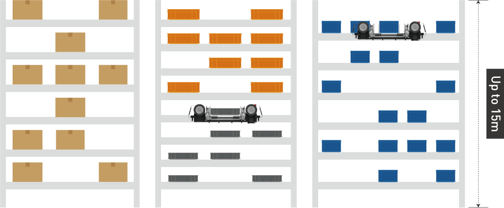 Telescopic Arm Extractor의 폭 조절 기능으로 다양한 크기의 물류를 핸들링 하며, 물류 간 Gap을 최소화하여 적재 밀도를 극대화
